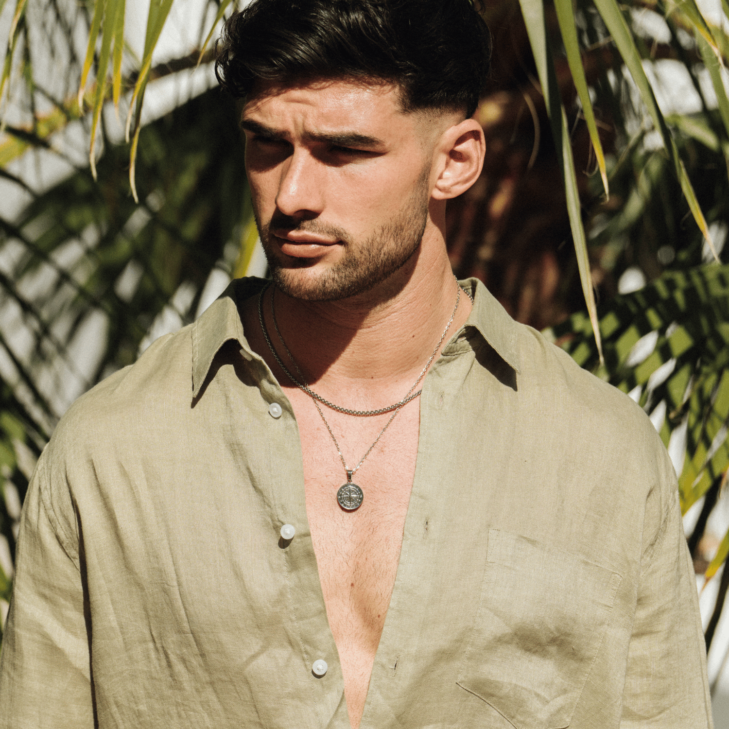 Denne eksklusive sølvvedhæng har en fint detaljeret, håndskåret kompasmedaljon. Bær den hver dag som en påmindelse om, at en ægte leder aldrig følger andre; han skaber sin egen vej. Den hænger i en 3 mm ledkæde med en premium sølvøsken og er behandlet med vores karakteristiske ridse- og falmningsbestandige beskyttelse.
